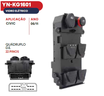 Interruptor Vidro Civic 07/11 - Quadruplo YN-KG1601